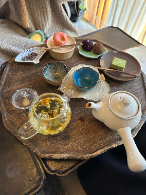 고운 분홍색 화과자는 너무 달지 않고 뒷맛이 깔끔해 함께 주문한 차와 잘 어울렸습니다.